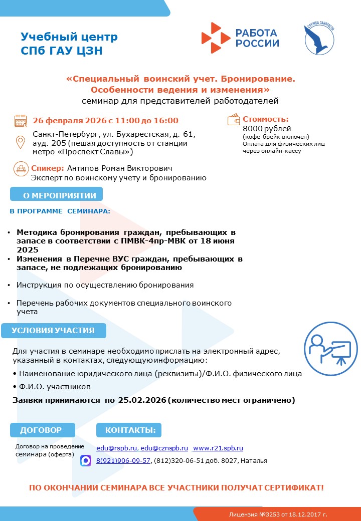 26.02.2026 - семинар «Специальный воинский учет. Бронирование. Особенности ведения и изменения»
