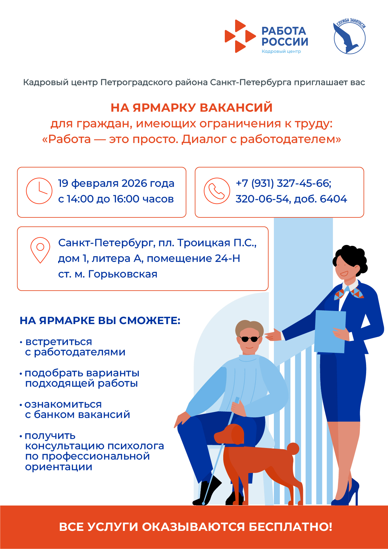 Кадровый центр Петроградского района приглашает на ярмарку вакансий людей с ограниченными возможностями «Работа –это просто. Диалог с работодателем»
